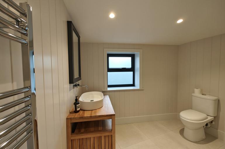 The top floor hosts a charming king-size bedroom and a triple room with a cosy window bench that frames breathtaking sea views.